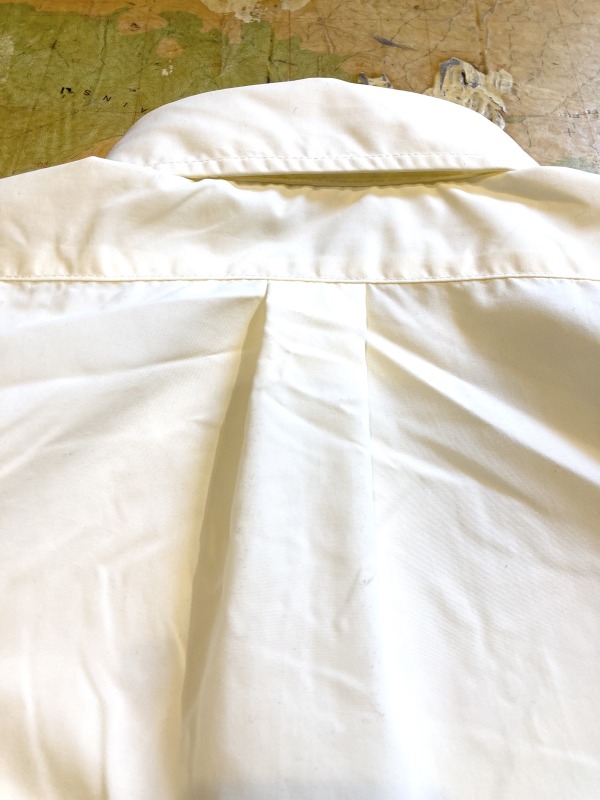 BURLAPのシャツと言えばビッグシルエットのB.B.シャツがブランドを代表するシャツですが、Generalシャツという形が登場です。試着してみると、B.Bシャツほどではないけれど肩は程よく大きく、身幅も広め、着丈の長い深めのラウンド。背中の深めのアクションプリーツも効いてアーモンドシルエットになる膨らみが良い感じ。アメリカのトラッドからヒップホップにまで愛されたあのブランドを思い出し、それにシャカシャカの素材感。1枚でも映えながらカーディガンやスウェット、ニットとのレイヤードにも使える。まさに探していたシャツでした。老舗のトラッドなブランドだと肩や胸囲が小さかったり、最近のブランドだと大き過ぎたりなかなかシンプルなシャツは探すとしっくりくる物がなかったりするんです。