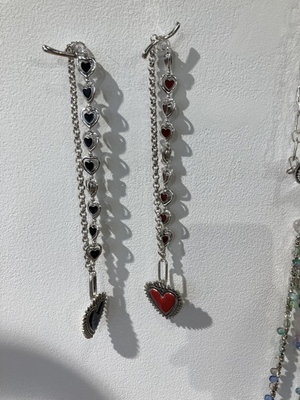 今回はエナメルのビビッドなカラーが小ぶりでも存在感あるハートリングに新しい定番のフラワーリングは優しいカラーのレジンがナチュラルなコーディネートにも合わせやすそうです。ブラックのハートのチェーンがドレスにも合うクールな印象のネックレスとブレスレット。カジュアルからドレスにまでコーディネートの完成度を上げてくれるアイテム達が今回も新作で登場しています。