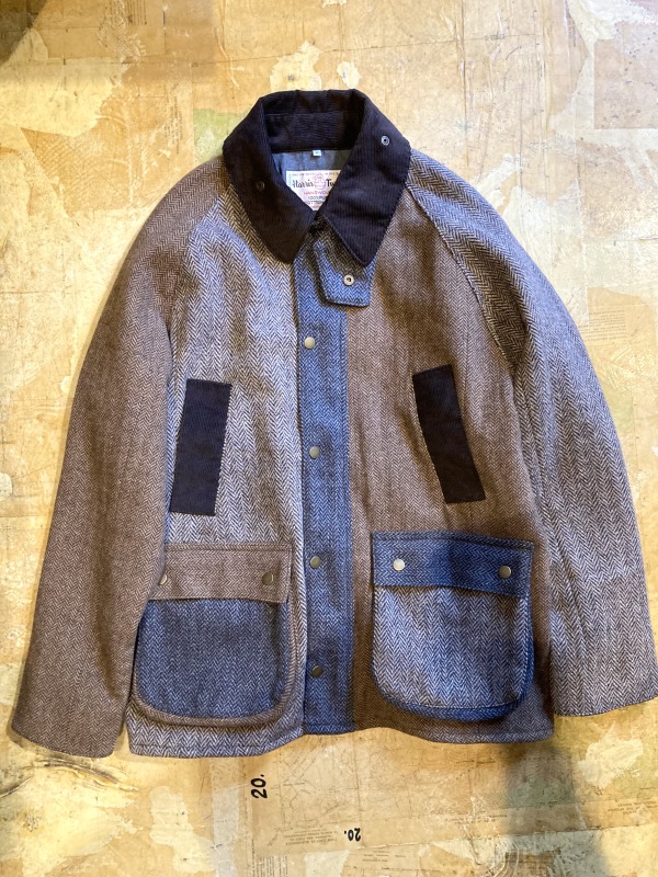 雰囲気が抜群にいいビンテージのハリスツイードをパッチワークで使用したカントリーコートはカラーの濃淡がクラシックな匂いを緩和してくれています。