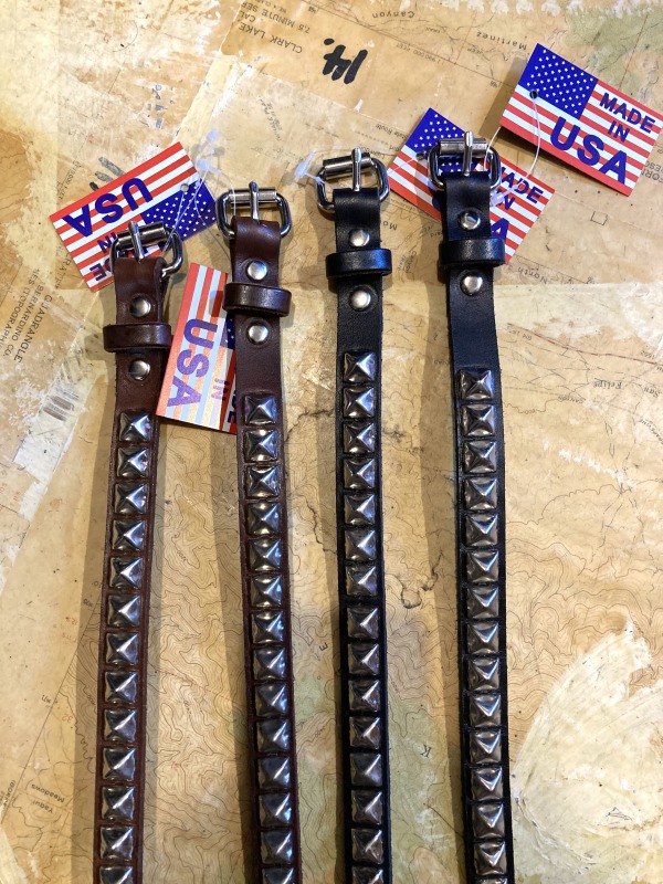 1979年にペンシルバニア州ワイオミングで設立されたMADE in USAにこだわり続けるベルトを中心としたレザーブランドBRACKNEY LEATHER(ブラックニーレザー)です。アメリカではバイカーショップでも扱われているようなブランド。今回はスタッズベルトをピックです。パンクスのイメージが強いですが、どこか今の気分で合わせたいベルトに思います。カットオフのワイドなチノパンに合わせたり、バギーデニムショーツにダメージなんかのスウェットと合わせたり柄のシャツをざっくり着て、スケボーのりながらハードコアの音楽聞いてたらなんてイメージが湧いてくるそんな気分です。もちろん、王道なワークパンツに合わせるのも今年はしたいなと思える今な気分です。