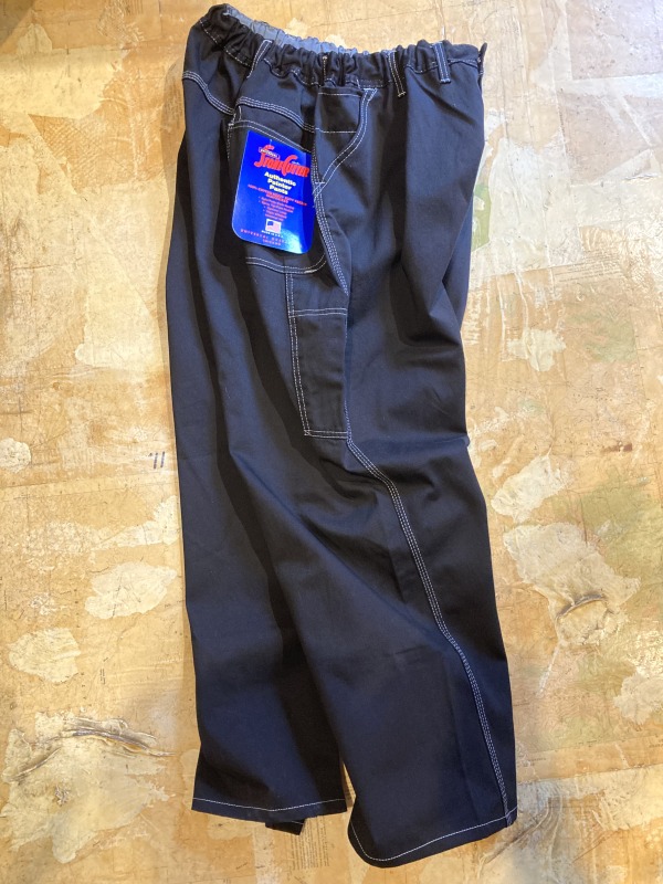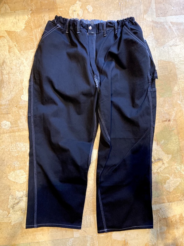 デッドストックのMade in USAのペインターパンツを使用。50inchのビッグサイズをイージータイプのウエストにリメイクしてさらにブラックにオーバーダイした説明が長くなるほどに色々としているパンツです。oddmentで人気のワイドシルエット。この定番シルエットのファンが本当に多いんです。さらにオーバーダイする事で使いやすいブラックになっているのも嬉しいポイント。